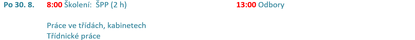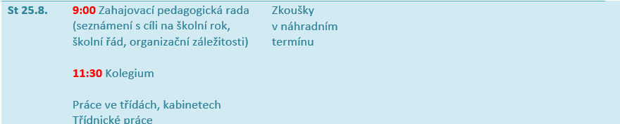 Organizace přípravného týdne 25.8 - 31. 8.2021,