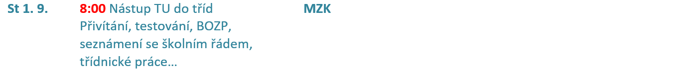 Středa 1. 9. 2021 - Zahájení školního roku - 8:00