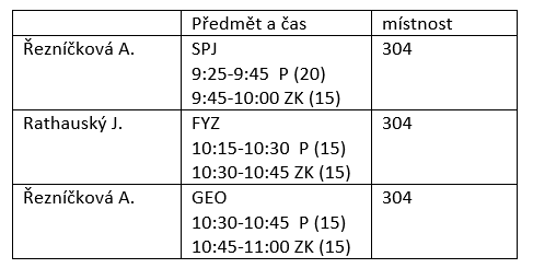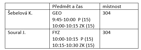 čtvrtek 26. 8. 2021, 12:00 (písemná část 15 min, ústní zkouška 20 min), 313, Hr