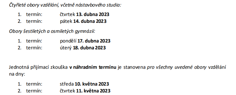 Specifikace požadavků pro jednotnou přijímací zkoušku konanou ve školním roce 2022/2023